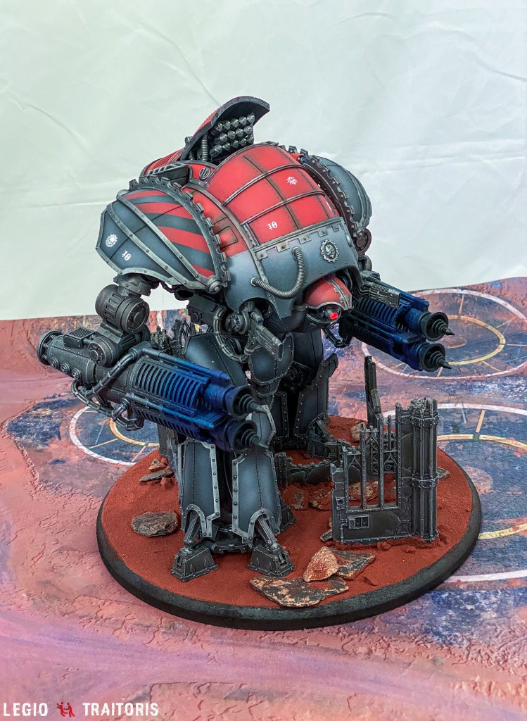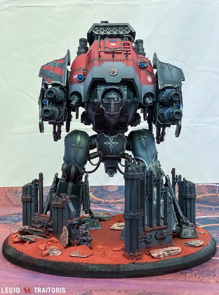 During the initial outbreak of war on Xana IV, the indentured Knights of House Ærthegn were caught up in the initial decimation actions being carried out by enemy Forges whilst en route to Saitama’s facility for emergency refit. Already suffering from damage incurred in battle elsewhere, House Ærthegn struggled through enfilading fire from massed lesser-Knight Questoris chassis. Several of the House Ærthegn Cerastus Knights fell to this directed fire, whilst protecting the core of Acastus Knights.